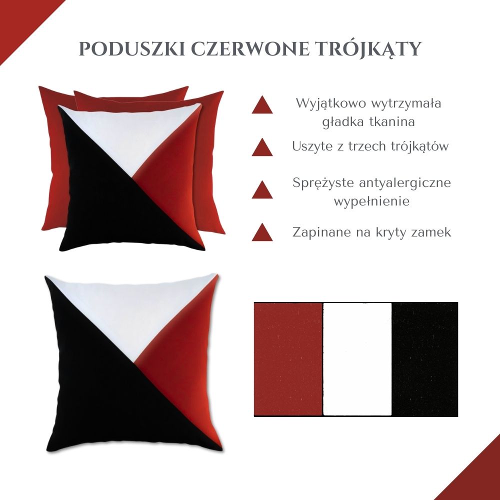 Zestaw poduszek dekoracyjnych:  trójkąty i czerwone